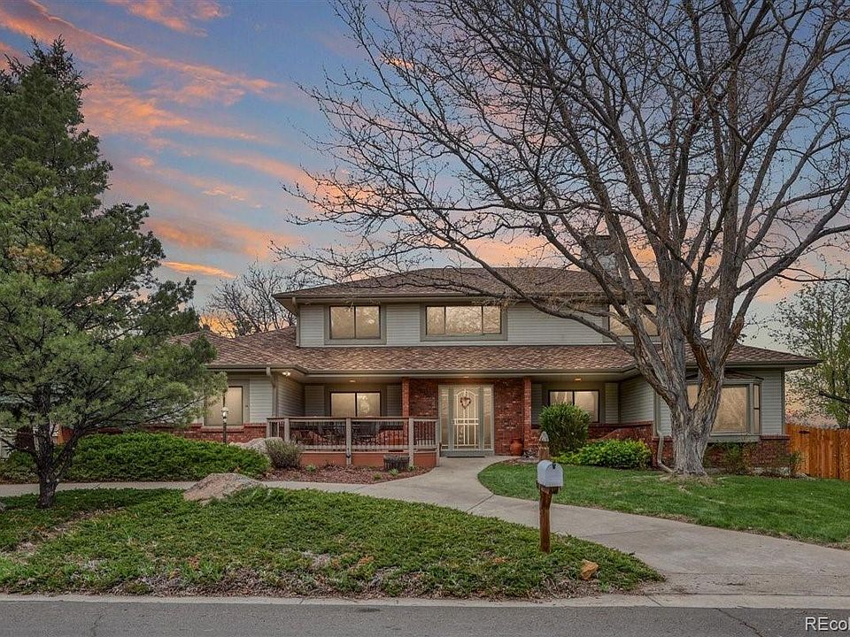 Rare opportunity to own a custom home in desirable Rainbow Ridge! You'll love this exceptional home on a huge lot with fabulous mountain views and a very hard to find 4 car garage! Entering the home from the circular drive, the tiled foyer opens up to a wonderful curved staircase. The large living room is light filled and features a double-sided fireplace, which is also enjoyed from the family room, built in book shelves and entry to a main floor office\study. The family room has scenic windows and more custom built-ins! The dining room can accommodate large gatherings and the kitchen is an entertainer's delight with tons of cabinets, granite counters and a huge peninsula. Pantry area has more cabinets and additional area for food prep. The main floor also has a powder room and huge laundry\storage\mud room! Take the lovely staircase to the 2nd level and there you'll find 4 bedrooms. The master suite is grand and has a luxurious 5-piece master bath and walk-in closet. Enjoy the warmth of the heated tile floors in both of the upstairs baths. The secondary bedrooms are well sized and mountain views can be enjoyed from two of them. The garden level basement is finished and includes a wet bar with refrigerator and wine cooler, game area and 3/4 bathroom. Enjoy the mountain views from the nearly 600 sq. feet of covered deck or from your own private gazebo. There is also a built in gas grill and the yard is an ideal canvas for gardening. The light rail is nearby and easy access to I-70 makes this an extremely convenient location to get to the city or the mountains. There is also a neighborhood pool and tennis courts! Homes are rarely for sale in this neighborhood, so don't miss out on this amazing opportunity!