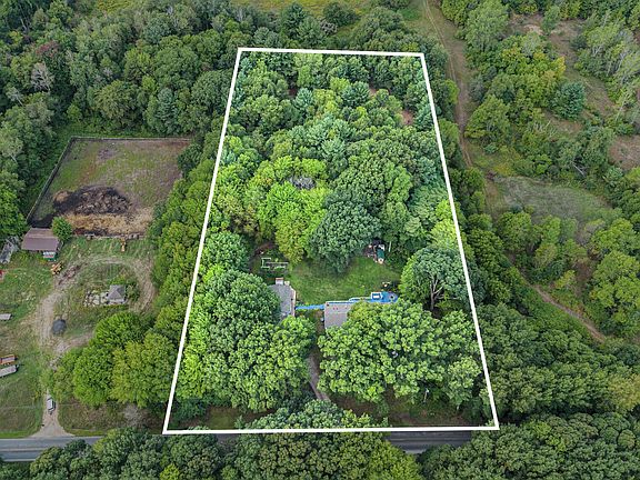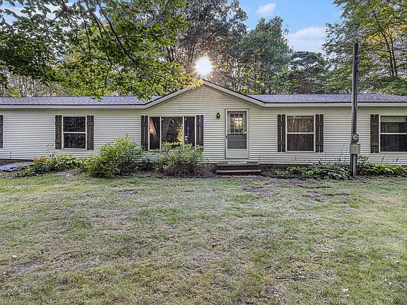 Beautiful top of the line model 4 bedroom, 2 1/2 bath home boasts 2240 sq. ft. of spacious living. Family room with wood burning fireplace, nice kitchen, formal dining room, large formal living room, primary suite with deluxe private bathroom, mudroom laundry with 1/2 bath. The oversized 2 stall garage/pole barn featuring attic storage. Plumbing is connected for an outdoor wood boiler system. The backyard entertaining space features a nice full length backyard deck, private patio with in-ground fire pit and many gorgeous plantings. Nicely groomed trail system and grounds with lots of wildlife for enjoyment and hunting. Private 4 acre wooded setting, on a low traveled dead end street and convenient to Schools and Town.