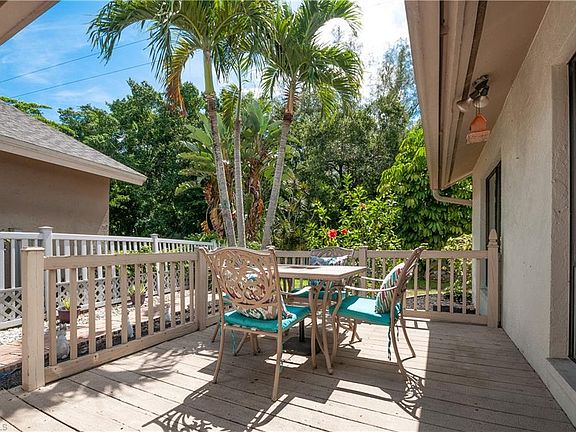 Welcome to McGregor Woods, a fantastic location in an inviting community surrounded by lush, mature trees, vegetation and a lake that is minutes to Sanibel Island and Fort Myers Beach with beaches, shopping and dining. This home is located on a very private premium end lot, next door to the community swimming pool, spa, playground and tennis courts making this an easy quick way to enjoy all these amenities without the hassle of the maintenance! The interior boasts 2 bedrooms, each with a private bath plus a very spacious office that could function as a third bedroom. The kitchen has been updated with granite counter tops, an island and newer appliances, plus the master bath has been updated including a tiled walk-in shower. The light and bright 4 seasons room adds entertainment space and provides access to the deck eating area and the spacious fenced rear yard. Additional outdoor space can be found when you enter the front gate, where a large paved patio, complete with a chiminea fire pot creates a private peaceful entertainment area. This home is perfectly suited for a young family, empty nesters or winter visitors looking to enjoy the amenities and ambiance of SW Florida living!