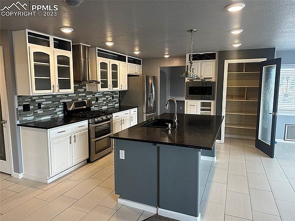 Immaculate home in Woodmen Hills. Enjoy a well-cared-for home that features all the bells and whistles. As we enter the home we are greeted with an amazing tile floor entry along with your living room with a gorgeous bay window. The dining room is formal and exquisite immediately following the living area. Now we enter the kitchen, we have a chef's dream, a gas stove, a bodacious refrigerator, a huge pantry, double ovens, plenty of cabinet space, astounding light fixtures, beautiful backsplash, and plenty of space for enjoyment. The home also features an applicable family room with a double-sided fireplace which leads into the home office. The laundry space is also off the main floor as well. Venturing upstairs, we have our additional bedrooms along with the primary bedroom. The upstairs bedrooms are sizable and feature a jack-and-jill style bathroom. Your primary bedroom is a perplexing, huge space, with a gas double-sided fireplace, that leads to your primary master bathroom which has dual sinks, a tub, and a stand-alone shower. The walk-in closet is the size of a bedroom itself, a massive space! The basement has an additional family room or theater area which has a full-service wet bar, this wet bar is already established and ready for you to utilize and features a sink, mini fridge, wine cooler refrigerator, and a mini microwave. The additional bedroom and bathroom are on the basement level as well. As we go out to the backyard, we have open space to enjoy for privacy and fulfillment, this is an 11,000-square-foot lot so plenty of space to move around. Massive color stamped concrete patio and your view of the mountains can be seen as too. Like I mentioned at the beginning of the post, all the bells and whistles! Go and show today!