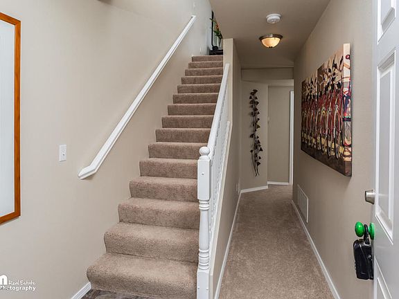 MOVE-IN READY! Great deal on Model home. Brand new townhomes!! Close to schools, shopping, restaurants, & Bases! 15min from Anchorage. Unobstructed views of Alaska Range!! Vaulted ceiling. Open Layout perfect for entertaining! Award Winning Kitchen w SS Frig included!! Master Bedroom Suite w WIC & Private Master Bath. Sep Laundry room. Low Maint Living w Quality Construction! Buyer CC Assist!