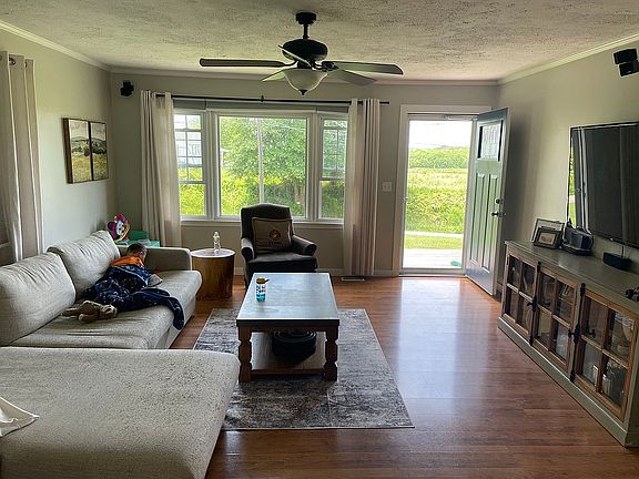 All offers must be presented with a pre approval letter. No but on contract or renters. To schedule a viewing please call Kaila Byers at 812-568-0110 Looking for a home in the country? This one is for you! This home is on 4 acres and features an attached two car garage and a detached 2.5 car garage and a barn on the back of the property. This cute 3 bedroom, 2 full bath ranch style home has a full walk-out basement and has convenient access to I-64. Upon entering you will find a large living room with wood laminate flooring. The kitchen features an abundance of cabinets, large island, new back splash and updated appliances. There are 3 large bedrooms and 2 full baths on the main level. The basement has been waterproofed with a lifetime warrenty from HealthySpaces. It has a vent less gas log fireplace and a 1/2 bath. Basement is newly remodeled and has an adorable built in play house. Step out back to enjoy the large open deck overlooking 4 beautiful acres and fenced in pasture. The home has new siding and new front and back doors, new roof, circle drive, and brand new septic system. Not pictured is a 15x16 flex space in the basement that could be used as bedroom, gym, office, or more! Please contact Kaila Byers at 812-568-0110 to schedule a showing. Serious inquiries only, please.