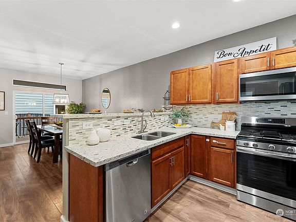Desirable Silver Lake neighborhood! This beautiful home offers a perfect mix of modern comfort & inviting style. Featuring 4 bedrooms & bonus office space, it's perfect for today’s needs. Whether you're whipping up a quick meal or hosting a dinner party, the kitchen is fully equipped w/updated appliances/breakfast bar/huge pantry. Living area has LVP flooring/cozy gas fireplace & large dining room w/back deck BBQ area. Generously sized bedrooms & luxurious master suite offering soaking tub/shower/walk-in closet. Gas furnace & AC! Savor your coffee from the covered front porch or stroll across the street to the neighborhood park. Conveniently located near Mill Creek Town Center with an array of restaurants, shopping, gyms, freeways & more.