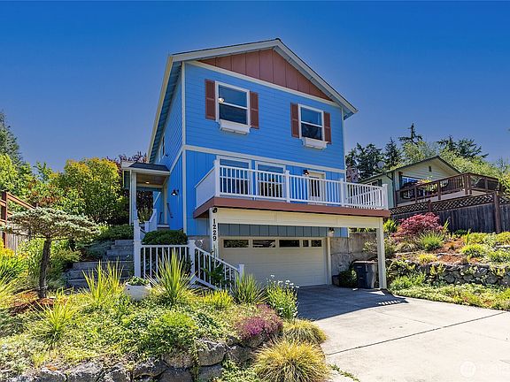 Beautifully maintained 3-bedroom, 2.5-bath home in the desirable Castle Hill neighborhood of Port Townsend. Built in 2013, it blends modern comfort with thoughtful design in a prime in-town location. The main floor features an open layout with a spacious kitchen, new Bosch appliances (2020), dining and living areas flowing to a large front deck & rear covered patio. Upstairs, the primary suite offers a private deck with peek-a-boo views of the water & Cascades. The landscaped backyard blooms with color year-round, & a newly added sauna creates a relaxing retreat. Conveniently located within walking distance to Salish Coast Elementary, the Hospital, shopping, and local amenities, this move-in-ready home offers comfort, convenience, & charm.