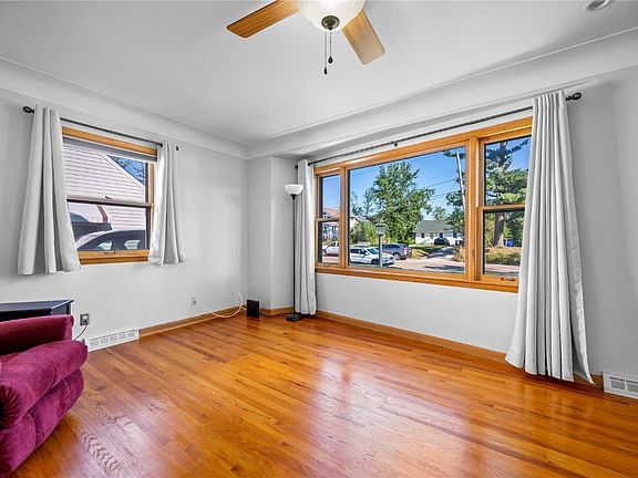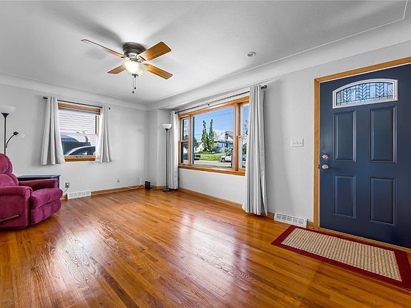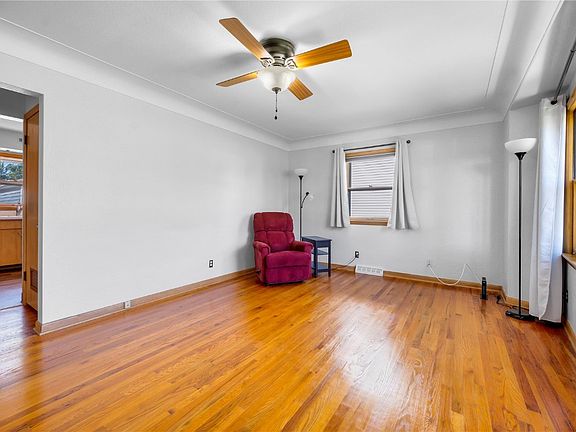 This story and a half home is all buttoned up and waiting for new owners. The hardwood floors and coved ceilings will welcome you the second you step in the door. With a bright and airy feeling you can make your way down the hall into one of two large bedrooms and a nice size bathroom with plenty of counter space and tiled shower. You'll find everything you need in the kitchen too! The upper level has a very large bedroom with a large closet space. The lower level features a massive rec room to use for whatever you'd like. Outside you will find a large one stall detached garage, deck and plenty of yard space.