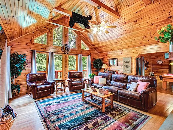 One of the larger 1BR/1BA cabins and one of the more meticulous! "Secret Hideaway" is a delightfully spacious, very private, beautiful cabin that borders the Great Smoky National Park! Plus you have the convenience of being just 2 miles from Gatlinburg and 4 miles to Pigeon Forge. This gem has it all. Lots of paved parking, a large game room, spacious living room with stone gas log fireplace with plenty of seating. Large floor to ceiling windows, cathedral ceilings and all wood interior. Ample sized kitchen with separate eating area. Full bath with walk in shower and the bedroom is a comfortable size with a jetted tub and stack washer/dryer in one of the closets. The deck is large and on one side houses the hot tub and then a large open area for dining, relaxing or entertaining. Owners enjoy watching the Dollywood fireworks from that part of the deck. Stunning views on your drive in and out of the property! Conveniently located off of the spur not far from the GSM welcome center. This is used heavily by the owners and is very well maintained. Guests will return year after year because of all the wonderful things this cabin offers! Come and take a look, you'll love it!