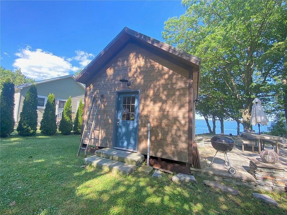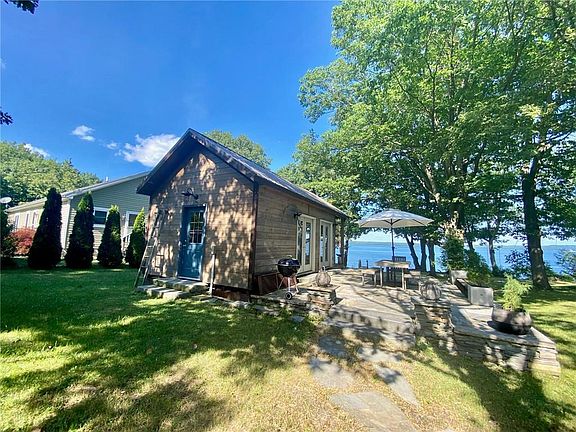 Come get your small piece of heaven! In the heart of the Finger Lakes. Close to many wineries and restaurants. This cabin has over 50 ft of lake frontage. New stairs leading to dock just done a few years ago. One large main living room with kitchenette and bunk area plus a loft. Private bathroom with composting toilet, sink and gravity fed shower. Double french doors open onto a gorgeous flag stone and slate patio. Perfect for outdoor dining and entertaining. Enjoy watching the sunrise from this beautiful front covered porch. It doesn't get any better than this! Cabin sleeps 4-6 people. Completely renovated and decorated by a high end interior decorator. Cheney European Oak Shiraz flooring throughout. Solid surface counter top and so much more! Make sure you check out the large wooded camping area across the roadway already set up with fire pit just bring a tent and the marshmallows! Come see this property today and dream of all the fun you can have!