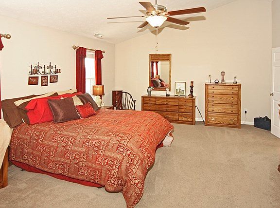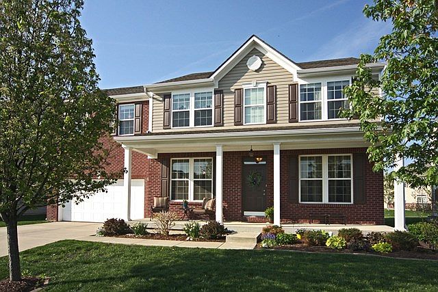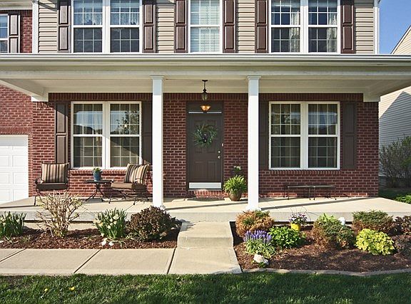 Cozy & beautiful Davis home in desirable Center Grove. You are greeted with inviting, covered porch, beautifully open entry w/ 9 ft ceilings, relax in the family room with the gas fireplace & view of the pond, sit out on the patio, enjoy cooking special dinners open to the family room. This home has so many builder upgrades! All bedrooms have walk-in closets, loft area & laundry upstairs & an unfinished basement with 9 ft ceilings jsut waiting for you to make it your own!