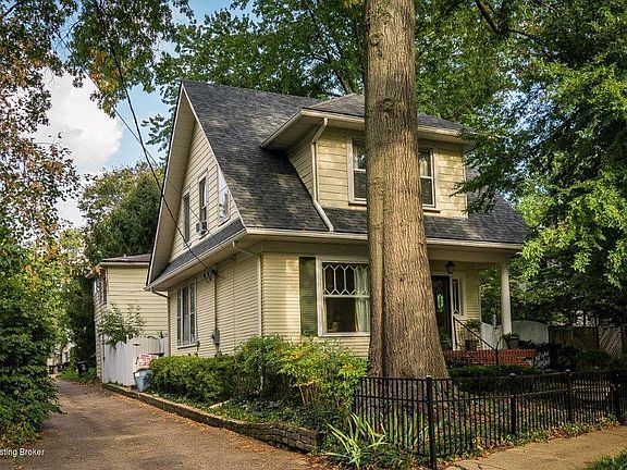 Buyer's financing fell through after inspections and appraisal. Welcome to this adorable, cottage style home in the Cherokee Triangle! Located just a half mile from Cherokee Park and Baxter Avenue, this 2 bedroom home has so much to offer. Large windows offer abundant natural light throughout. The first floor features a large dining room with tall ceilings, crown molding, and recessed lighting. The dining room is open to a large family room area with a beautiful exposed brick fireplace and built-in bookshelves. The kitchen has been updated with granite countertops, crisp white cabinets, and a beautiful stained-glass window above the sink. A half bath is conveniently located off the kitchen. Both the first and second floors boast gorgeous hardwood floors that add to the charm of the home.