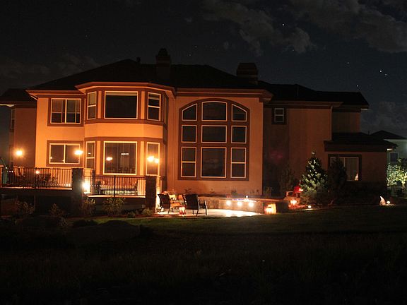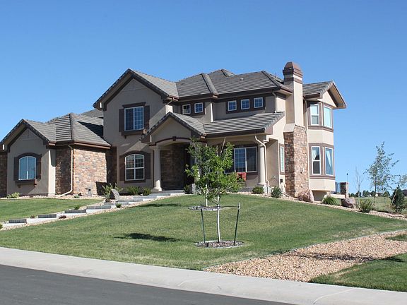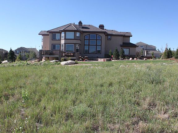 Stunning executive home on large lot that backs to private ranch. Approximately 4,346 FSF with 4 bedrooms (each with private bath) and 4.5 bathrooms. Chef's dream kitchen with slab granite, cherry cabinets, stainless appliances, large breakfast nook, and gleaming hardwood floors. 2 story family room with wall of windows, art niches, and gas fireplace. Formal living and dining rooms. Massive master suite with sitting area, fireplace and luxurious 5 piece master bath with jetted tub and incredible walk-in closet. Amazing private outdoor living space with fire pit, water feature, patio and low maintenance deck to take in the views. Easy access to shopping, restaurants, hospital, schools and I-25. Community pool.