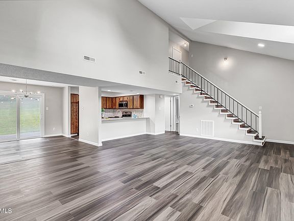 Popular west Knox neighborhood - Contemporary home on large fenced yard. Open living area combines living, dining & kitchen. Vaulted ceilings add both design and streaming natural light. Kitchen has granite counters, solid wood cabinets, and newer appliances. Dining opens to patio providing additional living and entertaining space. Large bonus room or 4th bedroom, 1/2 bath and laundry are also on the main level. Second floor has spacious primary suite with walk-in closet and bathroom. Two additional bedrooms on second floor are both larger than normally found in a homes this size. A second full bathroom is convenient to bedrooms. New flooring throughout home. New electric and water lines to the home from the street.