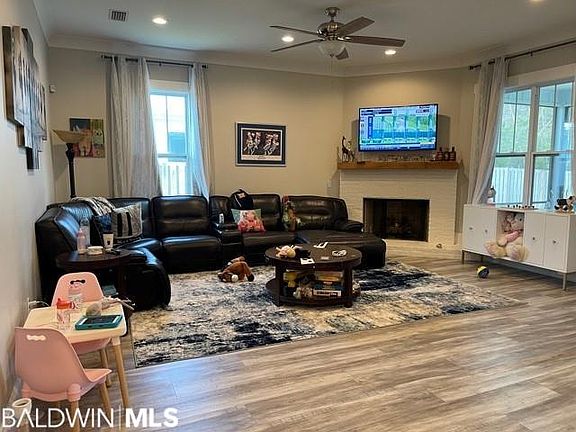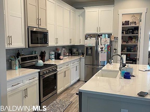Located close to Gulf Shores but on a quiet cul-de-sac - come see this hidden gem! Not to mention upgrades galore - oversized 6 panel doors in every room, gas fireplace, gas stove, soft closing cabinets and doors, oversized tub in master with separate shower, gold fortified, hardi plank exterior, impact windows, large master closet, granite counter tops, metal roof, high ceilings, double garage, fenced in back yard, wood plank flooring throughout main area with carpeted bedrooms. Great privacy as no one can build behind you- there is much more! All dimensions are approximate and should be verified by buyer.