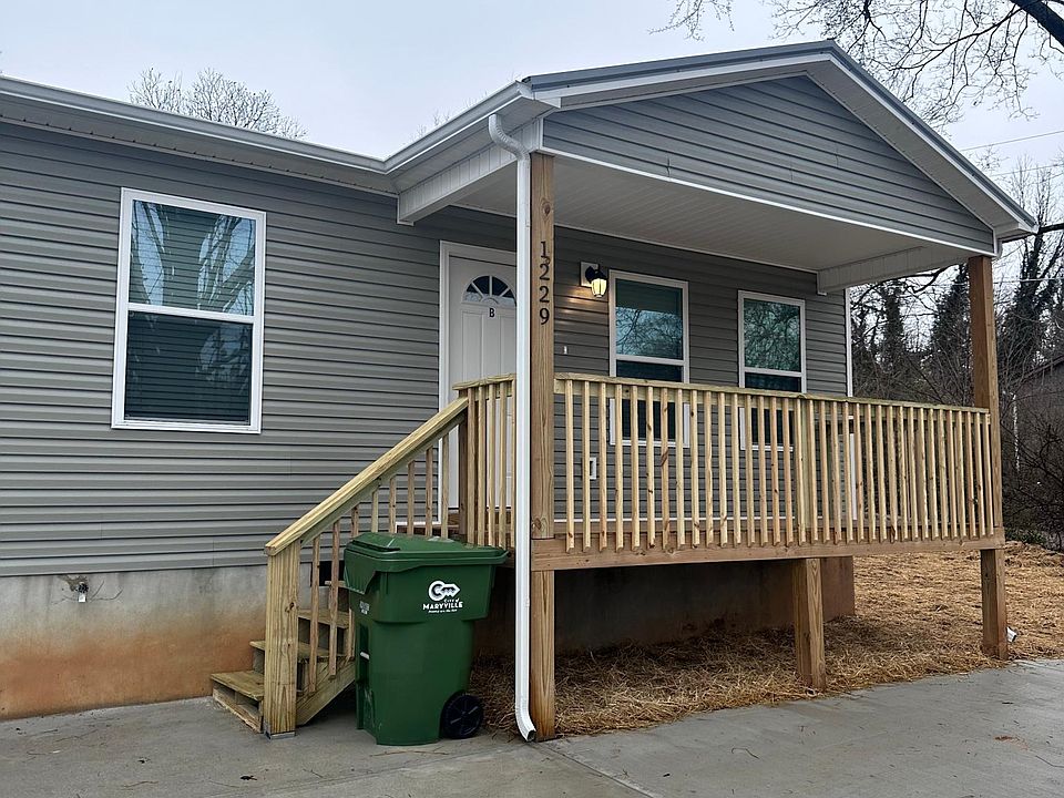 Brand New construction! 3 bedroom 2 full bath 1,200 sq ft. apartment in a Duplex style building. Stainless steel appliances and solid surface countertops. Hardwood and tile throughout. Front porch and back deck with small yard. Maryville City limits and schools Owner pays for trash and lawn care. Small pets ok up to 25lbs with non-refundable pet deposit of $350 and also pet rent of $25 per month. 1 year lease