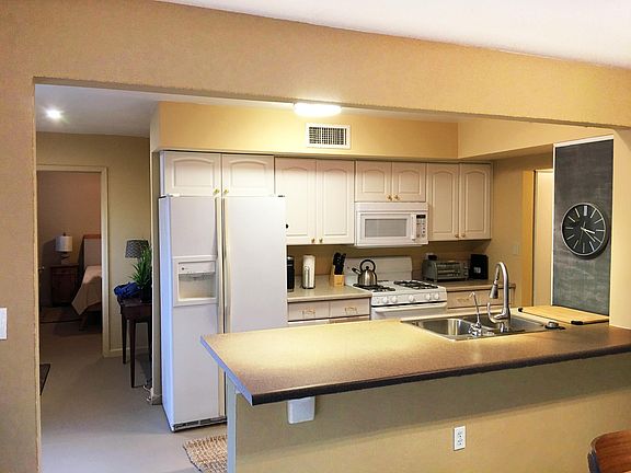 Beautiful, serene, light, airy, totally secure and private 1960's cottage located eight blocks from campus on a bike path; Very tastefully furnished; concrete floors; large kitchen with ample counter space and storage, water filter, dishwasher, GD; great closet space; 1 car garage/carport; large covered patio, private back yard, washer/dryer and more. There is no pool. Please note: This house is only available furnished. Owner pays for water. Renters are responsible for gas and electric costs. Prefer a yearly lease.