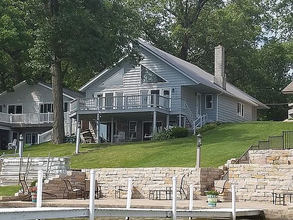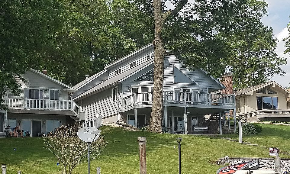 Location! Location! Location! This original owner, custom built, cedar sided home was built in 1987...open concept with vaulted ceilings. Walk out to large deck from both great room and master suite overlooking beautiful Syracuse Lake. Great beach for swimming, skiing, surfing, fishing. Brock dock included. In ground sprinkling system with 44 ft. of lake frontage with good seawall. Large concrete parking behind double car garage facing Northshore Drive. Walk to Maxwelton golf course just across the street. Kitchen has custom built oak cabinets with long island which is open to spacious living/dining area with gas fieldstone fireplace. Kitchen appliances included (electric oven, microwave, refrigerator, dishwasher). Two bedrooms on main level and two bedrooms on walkout basement level. Laundry/Utility room between kitchen and garage on main level. Hot water heat throughout with central air. This lake home is just right for the next generation of lakers to put their own finishing touches to flooring and bathrooms. Rare opportunity for this ideal location lake property.