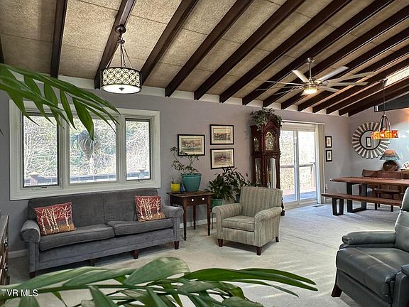 The open dining, living, breakfast and kitchen areas are perfect for entertaining. The covered outdoor room and wrap-around deck allows you to be one with nature. A lighted stone walkway leads to the landscaped private back lawn and home entry, this space is a bird, butterfly and flower paradise. The master suite has three closets and you will love the master bath and the private side deck. the kitchen overlooks the back lawn and affords great storage and a smart design. A media room and two guest bedrooms, the laundry room and a second full bath are on this level. The oversized 2 car garage and workshop lead into this welcoming and comfortable living area. No city taxes here, yet city convenience. Enjoy parks, mountain views, hiking & biking trails, 5 lakes for boating and water sports, arts and craft festivals year round and be conveniently located to Int.#26 and #81, the Tri Cities airport, VA hospital, Bristol Motor speedway, Historic Jonesboro, Greeneville and Rogersville as well as all the fun things living in East Tennessee has to offer plus our four perfect seasons and economical living. Don't let this fun home get away, why not live like you are on vacation year around. It's move in ready, nothing to do but ENJOY, BREATH AND RELAX!