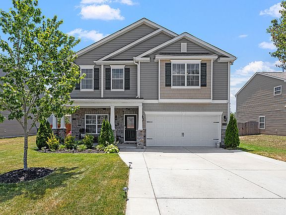Beautiful 4 bedroom house with loads of upgrades in popular and convenient Edgemont Landing neighborhood. Bright and open floor plan with luxury vinyl plank floors on main level. Separate dining room. Expansive living room has corner gas log fireplace with blower. Dining area and cook's kitchen featuring granite countertops and island, tile backsplash stainless steel appliance including gas range and a pantry. 2nd floor primary suite has a walk-in closet with built-ins, vaulted ceiling with ceiling fan and a luxurious en-suite bathroom with 2 sink marble vanity and large tile shower. Three additional spacious bedrooms with ceiling fans. Hall bathroom with dual vanity and tub/shower. Laundry room with shelves. Rocking chair front porch. Pergola covered patio in fenced backyard with irrigation system. Drive-in storage building. Smart home features. 2 car garage with built-in cabinets. Community amenities include swimming pool, two playgrounds and clubhouse. Less than 10 minutes to historical downtown Wendell/Social District and Wendell Falls/Publix. Easy access to the highway, 20 minutes away from downtown Raleigh. Don't miss this amazing opportunity to make this your new home!!
