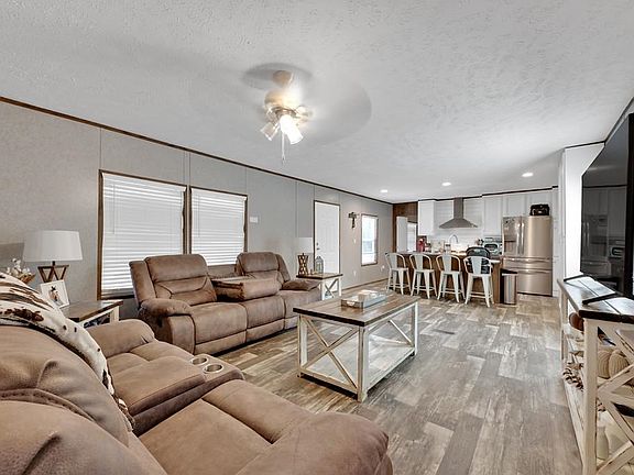 Welcome home! This beautiful property features 3BR, 2BA home with open floor plan, stainless steel appliances, relaxing covered porch, fenced in backyard, insulated shop with power, and 6.7 unrestricted acres with a pond. Go Net Speed Internet.