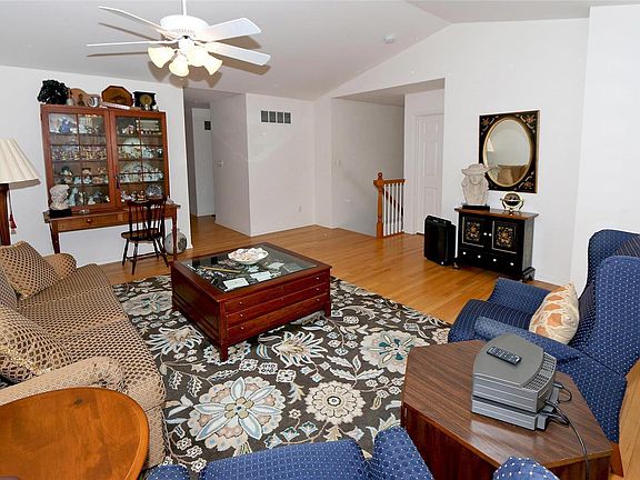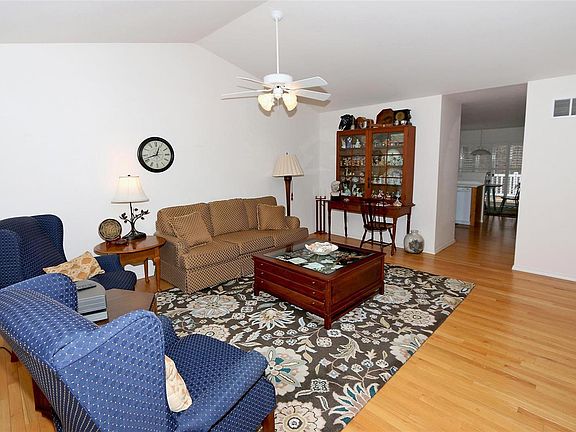 IMMACULATE 2BR/3BA VILLA! BACKS TO WOODS! Enter to charming living room w/cathedral ceiling & gleaming wood floors that extend into the rest of the main level. Kitchen is bright & open to the breakfast room w/large window + slider out to 1 of 2 composite wood decks that overlook woods. Double doors to the adjacent dining room currently used as a den/office/craft room, also with large window that faces woods. Full hall bath. Master bedroom suite is spacious w/cathedral ceiling, ceiling fan, large bay window facing the woods, double closets, & private full master bath w/walk-in shower. Main floor laundry room just inside door from 2-car attached garage. Open staircase in the living room leads to professionally finished walk-out lower level that wows! Spacious 22x18 family room w/gas fireplace, 3rd full bath, + slider to 2nd composite wood deck w/1 step down to small back yard & woods. 2nd bedroom w/walk-in closet. Large storage area. Plantation shutters throughout. Security system. Location: Suburban