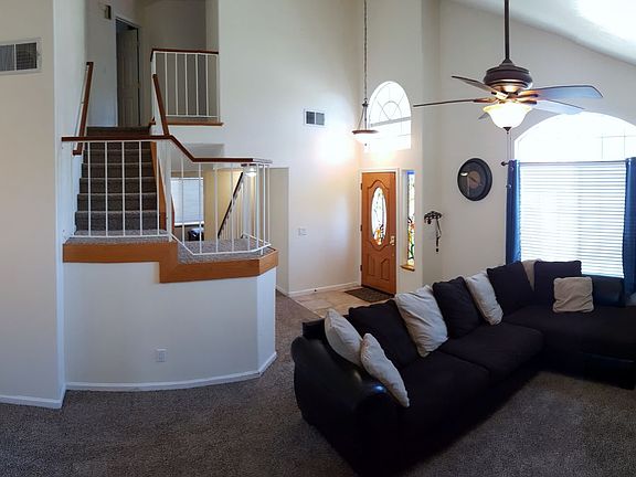 With just over 2,200 sq. ft., this beautiful home has a spacious, open floor plan, a separate family and living room. Downstairs features 1 bedroom and 1 bathroom, inside laundry, and a bonus room, used as a bedroom. Upstairs leads you to 3 bedrooms, a balcony coming off of the master bedroom and 2 bathrooms! The carpet is all new, and there is laminate wood in all upstairs bedrooms and tile in bathrooms and kitchen! There is also Leased Solar through Vivant! LOW ELECTRIC BILLS!! Owner says summer bills running the AC only $130 a month.. the 12 month history is attached, ask your Realtor TODAY! The home is situated on a cul-de-sac in one of the most desirable locations in town! The backyard has a covered patio with mature trees and a spacious lot size for a blank canvas to make it your own!
