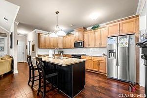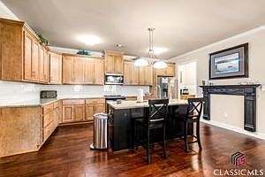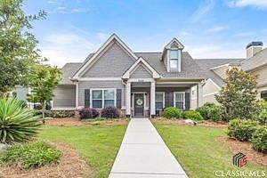 Charming one level cottage in Grove Park, a perfectly located community less than a mile to Oconee High School and Veterans Park. The living room is open to the kitchen and dining area, and has a brick surround fireplace. Kitchen includes granite counter tops, upgraded appliances, center island, butler's pantry and large pantry. The laundry room is located when you enter from the 2 car garage, and has extra storage. All three bedrooms are on the main level and are a split floorplan. The master suite has a large walk-in coset, double vanity, separate tub and shower and water closet. Oversized walk-in closets and immense storage. A favorite place to be is the extended covered porch with room for dining and sitting, and is a part of the fenced yard. Lawn care is included in the HOA and the community has a playground and swimming pool.