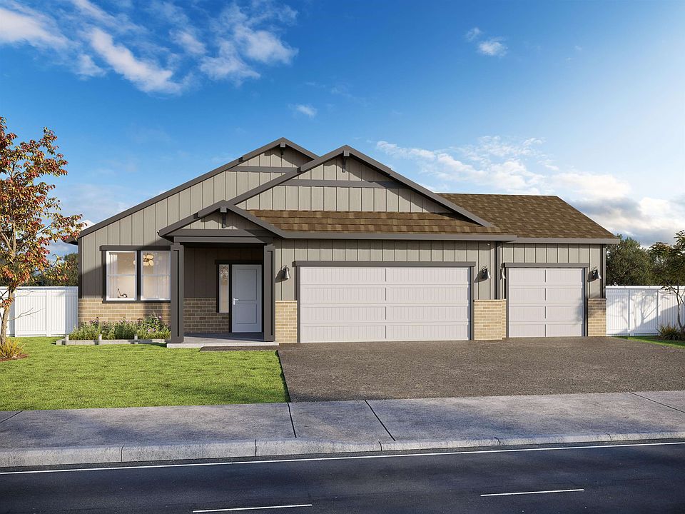 Experience modern elegance in this newly constructed Eagle floor plan by Architerra Homes. This 4-bedroom, 2-bathroom residence features luxury plank flooring throughout and is situated on a generous lot with a 660 square foot 3-car garage. Spanning 1,765 square feet, the open floor plan includes a gourmet kitchen with solid surface counters throughout, enhancing both style and functionality. The primary suite offers a walk-in closet, dual vanity, and the covered patio is perfect for relaxation and entertaining. Enjoy beautifully landscaped front and back yards that complete this exceptional home, and we cannot forget about the proximity to the Deer Park Golf Course. Embrace comfort and sophistication—schedule your tour today! Some stock photos. Please contact agent for correct exterior elevation and options.