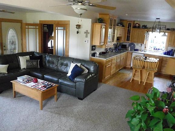 Remodeled 4 bedroom, 2.5 full bath home. Home offers an amazing bright dining room with lots of windows! 6 panel solid doors, some hardwood floors. Master bedroom with walk in closet and french doors to a balcony with open railing overlooking dining room. Maple cabinets in the kitchen offering lots of storage and kitchen island. 2 full baths - whirlpool tub and walk in tile shower on main level bath. 1st floor laundry. 3 car attached insulated garage with heat hookup and additional 28 x 26 pole building. Private patio on 1 acre of land.