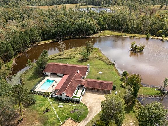 Welcome to El Jefe, a 100 acre gentleman's farm located in Waverly Hall, GA just 20 min from Columbus. Enjoy the mile long driveway that takes you through the tunnel of trees and around the fenced pasture to the home that is surrounded on three sides by a 7 acre lake ideal for fishing. The house is all on one level with thick ( 18" ) concrete walls. There is a four car garage attached for your vehicles and toys. Enter through the garden area to an enclosed breezeway ( right to the garages or left to the home ). Entering the home you are welcomed with a large open gourmet kitchen with a custom island, open to the family room with beautiful wood ships lap ceilings and polished concrete floors. There are 5 possibly 6 large bedrooms with 3 full baths and one half bath. The primary bedroom features a really nice heated floor tile bathroom with a stand alone soaking tub and a large tiled shower. The primary bedroom opens out to the pool area which features a large gunite pool and a large area for entertaining with a covered porch ideal for grilling and just getting out of the sun for a bit. There are a total of 3 fireplaces and just so much more. A few other features include; 40' x 96' pole barn with power, high speed internet service, cedar lined closet, exercise room, quartz and granite countertops, irrigated lawn, 7 acre fishing lake, 39 - 40 acres of 10 yr old planted pine, fenced pasture ideal for horses or make it a great dove hunting field. Ample deer and turkey in the area. Additional adjacent acreage available.