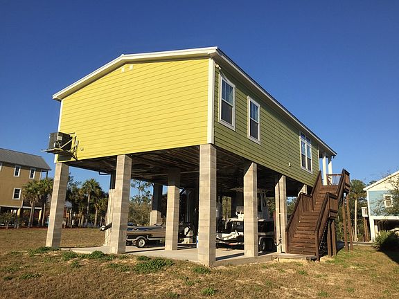 Your perfect vacation get-away place! Key West style stilted home is tall enough to park a T-top boat and plenty of room for vehicles. Home boasts upgraded wood floors, SS appliances and is very tastefully decorated. Comes fully furnished and ready to enjoy some of be finest flats fishing and scalloping of the Gulf coast. Rivers Bend offers private boat ramp, docks, gazebo on the river with fire pit and BBQ, pool and spa. Low HOA fees make it affordable. Don't let this one slip away!