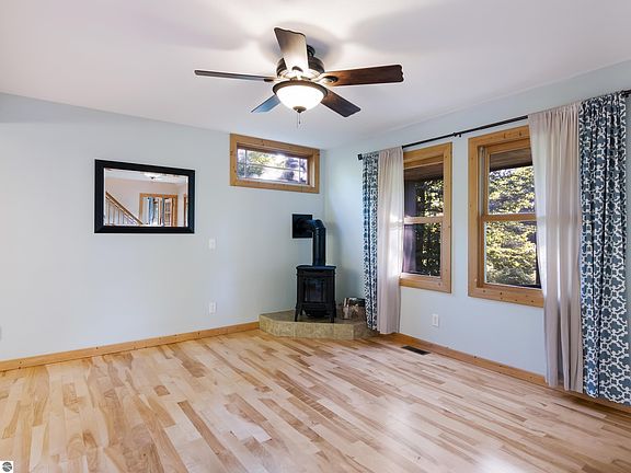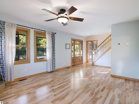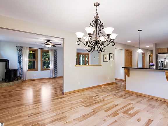 4 Bedroom, 3 1/2 bath home located in South Creek subdivision on a private ~1 acre lot with wooden common area across and behind property. This exceptionally kept home is move-in ready, with recent updates including a new furnace, dishwasher, stove, washer, dryer, composite deck surface, and refinished birch hardwood floors. Main level features include a natural gas fireplace, spacious den, kitchen with granite countertops, and a large walk-in pantry. Lower level amenities include a private walk-out paver patio, expansive rec room and 9 foot ceilings. The sizable mudroom/laundry room is the perfect place to store and unload items upon entering from the 2 1/2 car garage. The yard features underground sprinklers and secluded backyard fire pit. Enjoy Northern Michigan's beauty from the serene front porch or from inside the kitchen where windows bring in stunning natural light! South Creek residents enjoy quiet streets, close proximity to award winning schools, shopping, and plentiful recreation opportunities at nearby lakes, rivers, and trails.