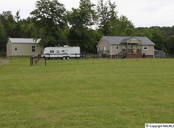 Get-away from it all. Hunt, Fish, Farm, or just Relax. New frame house off main road -2 Bedrooms/1.5 Baths, metal roof, partially fenced 1.8 acres, city & well water. New 30'x40' detached metal building. Room for vehicles, plus a boat, ATV & still more storage. Shop has power, framed inside for other rooms, can be plumbed for water & septic. Only 1.5 miles to boat ramp, 8.5 miles to Lake Guntersville State Park - Just down the street from the Fire Dept. & local store.