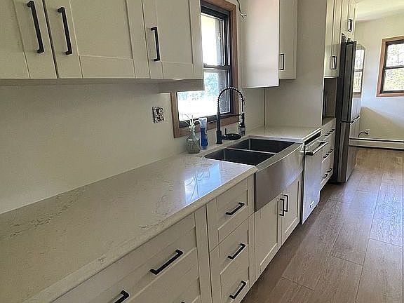 Newly remodeled home right on the outskirts of town! 3 bedroom, 2 bathroom, new appliances in kitchen huge 48in gas stove for all those cooking fanatics, unfinished basement, 2 car detached garage, and 3.9 acres Complete remodel estimated to be done early October .