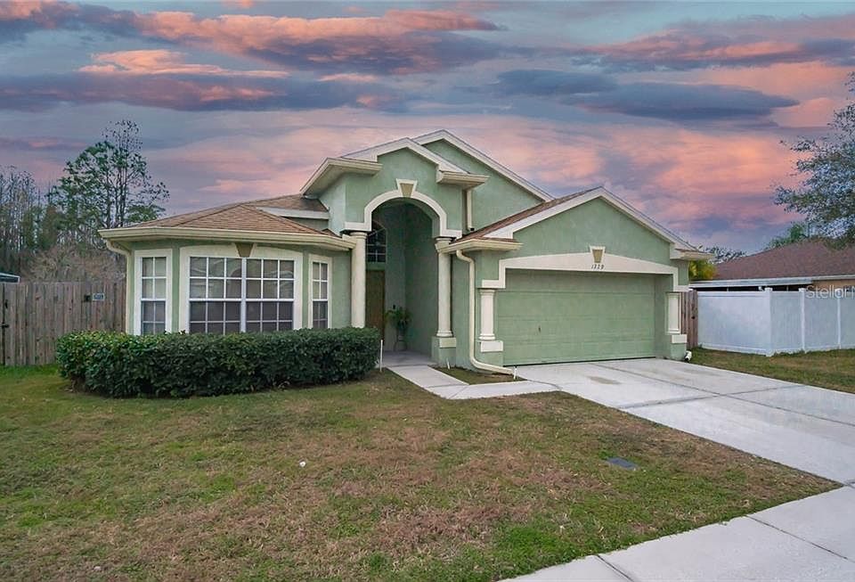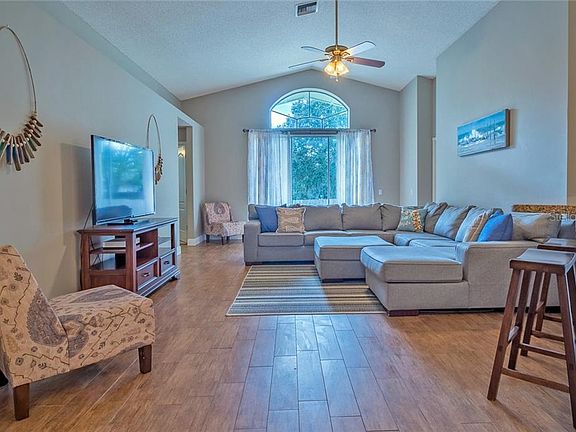 MULTIPLE OFFERS: Submit all offers by Monday at 6pm. 4BD/3BA/OFFICE with WATER VIEWS on an 1/4 ACRE LOT in the desirable Meadow Pointe II community. NO HOA fees and CDD fees as low as $50.91/month! Enjoy a cup of coffee sitting on your back porch over looking the Spanish moss framed outlook of your fenced-in backyard, pond view and conservation area. It's easy to picture yourself living here. Stepping inside the front door to this open floorplan will invite the feeling of home. The four bedrooms, office space and living areas are well laid out with upgrades in all the right areas to include ceiling fans just where you want them. Don't miss the hottest home fashion trend with the wood-look tiles in the main living areas. Plus, the fully remodeled kitchen to include custom cabinets, stainless steal appliances, granite counter tops, extra deep kitchen sink, and upgraded light fixtures. Your guests will love the remodeled front bathroom that includes custom lighting, granite counter tops, and tile around the bathtub. You're sure to fall in love with this home. It is a must see in person. Make your appointment for your private viewing before it is too late. This home won't last long. INTERIOR PAINT (2021) ROOF (2014) All Room Sizes are Approximate.