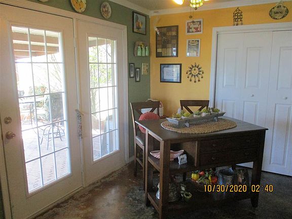 THIS IS A VERY NICE STARTER HOME WITH GREAT VIEWS OVERLOOKIN THE NEIGHBORING PASTURE/POND. THE HOME HAS AN OPEN CONCEPT FLOOR PLAN WHICH ALLOWS FAMILY TO COOK AND ENTERTAIN EASILY. OFF THE KITCHEN IS A LARGE (12 X 16) PANTRY.....COULD ALSO BE USED AS A SEWING ROOM/OFFICE. OFF THE BACK ENTRANCE FROM THE CARPORT...THERES A WALL OF CABINETRY...THIS HOME HAS LOADS OF STORAGE INSIDE THE HOME AND OUT AS WELL. TEXAS-SIZED(18 X 20) MASTER BEDROOM IS WONDERFUL...WITH MASTER BATH MAKE-UP VANITY AND SEPARATE ROOM FOR SHOWER. MASTER WALK IN CLOSET IS ALSO A SAFE ROOM. SET OF FRENCH DOORS OFF KITCHEN/FAMILY ROOM LEADS TO A PEACEFUL AND QUAINT COVERED PATIO...WITH A WALKWAY TO THE NEWER HOT TUB(STAYS WITH THE SALE) IT'S JUST THE RIGHT SIZE HOME ...NOT TOO BIG....ENERGY EFFICIENT HOME.MOTIVATED SELLER.