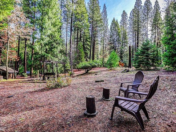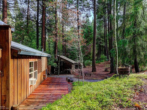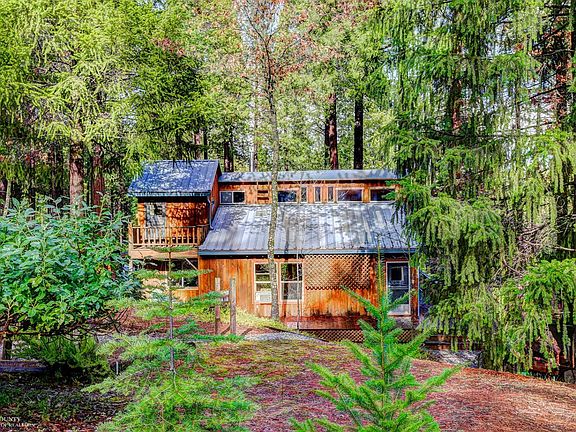 Astonishing cabin in the woods-charming, Western Metals roof, warm wood thru out, a custom feel in a classic woodbutcher mode, clear story, rich with views & abundant light, delightful home all watched over by architectural grace.Vaulted ceilings & open beams. Several well placed sheds and a large & small garden area. The love & appreciation for this gorgeous groomed forest dovetails with artistic fire mitigation and the meadows radiate delight. The home is in the very center of the property insuring privacy. A rare find.