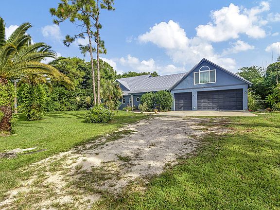 Spacious four bedroom, three bath home with large gameroom, on a secluded 1.31 acre lot just off Coconut Blvd in terrific and convenient Acreage location. Impact windows, stainless appliances, large rear screened porch, fully fenced lot. Great for animals and room for a pool, barn or other outbuilding. Plenty of room for your RV, boat or other outdoor toys. Solar powered automatic gate, new water pump, under sink reverse osmosis, indoor utility room, three way split bedroom plan. Gameroom upstairs great extra living area.