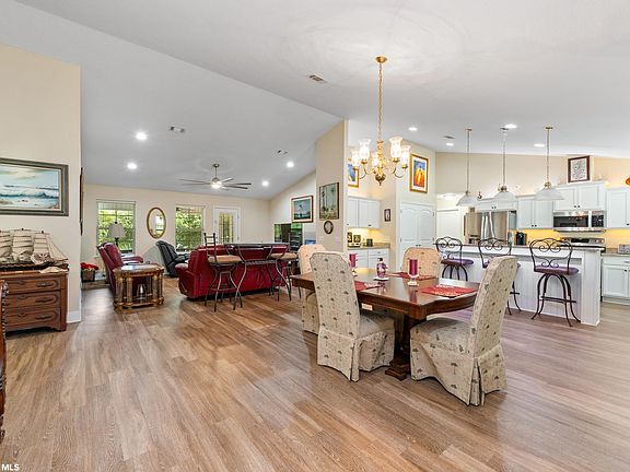 Welcome to Perdido Bay Oaks Subdivision conveniently located off Gorgeous Perdido Bay. Beautiful Oak Trees line the streets of this quant area with a community pier to enjoy swimming and/or fishing. Perdido Bay is just a short walk down the street where you can watch the sun come up in the morning or sunsets in the evening. Lillian boat launch is just minutes away. The home features 3 bedrooms, 3 full baths with an open split floor plan. Enter to find vaulted ceilings, LPV flooring, and views of all main areas. The kitchen has granite, stainless steel appliances (Kenmore Elite), white cabinetry, under and over cabinet lighting, large breakfast bar, nice pantry, and coffee bar; Large primary suite has trey ceiling with 2 sinks in the bathroom along with tub, shower, and fan; great room has vaulted ceilings and overlooks screened in porch and lovely backyard; Screened in porch is a great extension of the home to enjoy with outdoor spa. Extras features include: Gold Fortified; Fans throughout home; Large laundry with shelving; pull down attic storage with some flooring; generator amp in garage; fabric shields for windows; separate water well that is set up to the Rain Bird sprinkler system; security system with cameras in 4 different areas outside; outside covered-open shelter/carport with power for RV; wonderful landscaping with lemon, blueberry, and peach trees; large corner lot and so much more. All information provided is deemed reliable but not guaranteed. Buyer or buyer’s agent to verify all information.