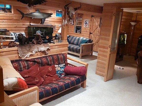 Two story, natural cedar sided colonial on over an acre of treed property. Unique Features: First floor den (can be used as office or sewing room, etc.) Professional office and pocket-door separated 1/8" round horizontal pine log walls "Man Cave" in basement with gas fireplace Fully equiped fitness studio on first floor 50 ft, 10,000 gallon fully stocked koi pond with 4 foot high waterfall with paver sidewalk and stone bridge. 1/8th acre "dug pond" fully stocked with native fishes. Paver driveway. 12' X 23' four season sun room with 5 person Hot Springs spa. Granite countertops in kitchen City water plus well water for irrigation Neighborhood Description Neatly kept, children friendly neighborhood. 8 miles form international airport. Half way between Akron and Canton (home of the football Hall of Fame) Ohio. Forty miles south/southeast of Cleveland.