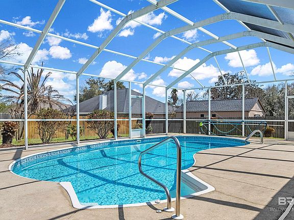 POOL! This spacious 4-bedroom home in Plantation at Magnolia River offers a perfect blend of comfort and convenience, complete with a pool, lanai, and a powered outbuilding. It features a Fortified Roof (2023) for potential insurance savings and is situated in Zone X Flood Zone, meaning flood insurance is not required. The exterior features a double side-entry garage, a fully fenced backyard with gated access, a screened-in back porch and pool area, and a 16' x 16' outbuilding with power for added functionality. Inside, the home offers a well-designed split floor plan with four bedrooms, two bathrooms, a breakfast room, a separate dining area, and a versatile flex room that can serve as an office or additional living space. The kitchen is equipped with stainless steel appliances, including a new refrigerator (2023), while other recent upgrades include a new HVAC system (2024) and a hot water heater (2021). The primary ensuite offers double vanities, double walk-in closets, separate shower and garden tub. Conveniently located near downtown Foley, this home also provides easy access to the beach and Fairhope, making it an ideal choice for those seeking both relaxation and accessibility. Buyer to verify all information during due diligence.