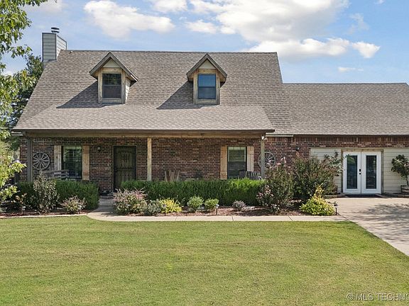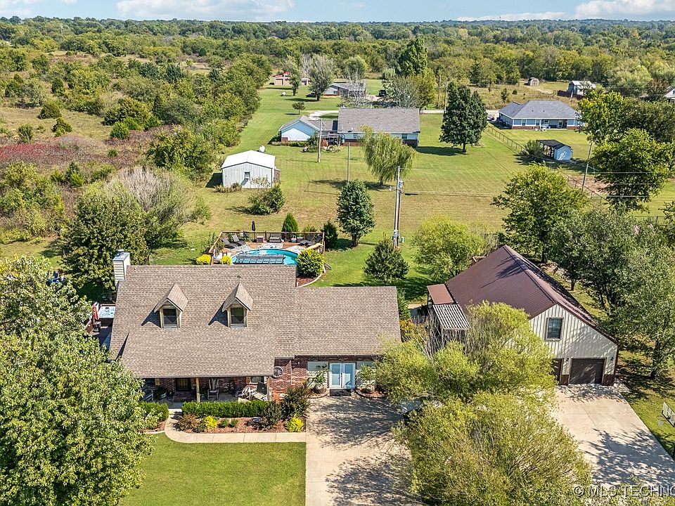Looking for a home that is a STAY-CATION with loads of privacy? This is it!!! Privacy....pool with a slide, waterfall and swim up bar...GORGEOUS landscaping....outdoor projector screen for movie nights in the pool....side deck overlooking a pasture....firepit....huge covered patio....guest quarters above a 40x30 shop with heat/air for all those hobbies...plus another 20x12 storage shed. Beautiful one-owner, custom built 4 bedroom / 3 bath brick home on +/- 0.75 acre lot, in a peaceful country setting within the Owasso School District. The interior is reminiscent of a vacation cabin with an open floor plan, wood burning fireplace, beautiful kitchen with granite countertops, island seating for four, formal dining room overlooking the back patio, large master suite with direct access to the backyard oasis, and the 4th upstairs bedroom can double as a game room with its own private bath. HUGE shop with plumbing, electric heat and air, plus it has a full bathroom and finished living quarters above. Fantastic location with quick access to Owasso and Claremore. Home is ADA accessible and equipped with a whole home generator!