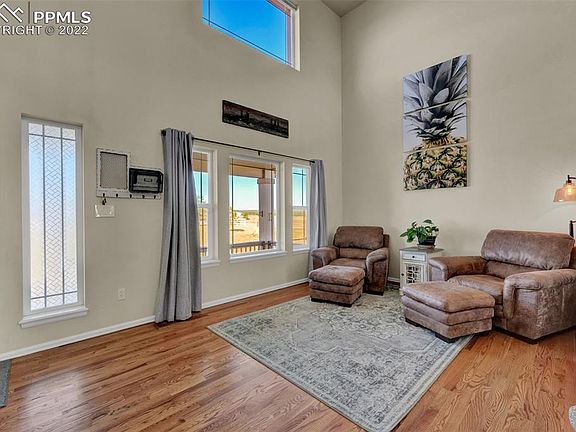 Welcome to this gorgeous west-facing 2-story horse-friendly property. You can’t beat these views of Pikes Peak! The home is equipped with 4 bedrooms, 4 bathrooms, a 3 car garage, a finished basement, a walkout, and on 2.59 acres! As you arrive you'll fall in love with the abundance of space. There is plenty of room to park your RV, trailer, boat, or other vehicles. The covered entry will lead you into the bright and spacious living room with hardwood floors and high ceilings. As you move through the home you’ll see the formal dining area with a window to enjoy the views and calming sage walls. Also on the main level is the open-style kitchen with a touch screen fridge, stainless steel appliances, wood cabinetry, and lots of counter space. The kitchen features a walk-out to the deck to enjoy the views and all that Colorado has to offer. Windows surround the living room which will make it a great room to spend time in. The living room also has a gas fireplace with a built-in niche above the mantle. As you head up the stairs you’ll find a loft area with plush carpet and space to turn into a family room or office! The master bedroom is also on the upper level with large windows and an arched entry to the bathroom. The master bathroom features wood cabinets and a double vanity sink, tub, walk-in closet, and stand-alone shower. Rounding out the upstairs are two additional bedrooms with full bathrooms. Back down to the main floor are the laundry facilities and a half bathroom. The basement is newly finished with lots of space to entertain, a bedroom, a full bath, and a walkout to the backyard. The garage has a new door, is insulated, has an RV hookup, and has Alexa-activated lights. The Latigo Trails area is one of the more highly desirable areas in Colorado Springs. It is convenient for schools, shopping, recreational activities, and other amenities. Don’t miss out on this beautiful property, come see it today!