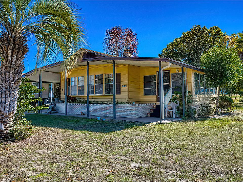 Active under contract: 2/2 plus enclosed porch on the golf course with great view. Updated with new a/c in 2016. Large bedrooms with walk in closets & an open floor plan. Extended utility room for extra storage and golf cart garage. Located in a 55+ golf community where you OWN YOUR LAND! Needs some TLC, come make this house a home.