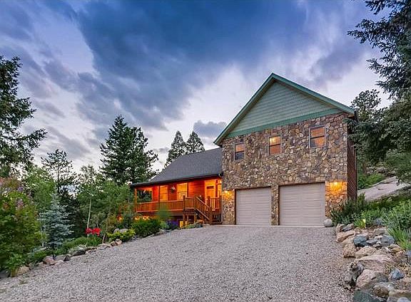 A true gem this home offers true Conifer living with mountain views, a private lot, updates throughout and great architectural details. Situated on a spacious usable lot with rock croppings, perennial gardens, mature trees and views of the continental divide. Close access to Hwy 285! Architectural details include a beautiful fireplace and surround, stunning refinished hickory floors, custom pine railings, vaulted ceilings and remodeled kitchen. The gourmet eat in kitchen features a large bar, nook area, beautiful granite slab, marble backsplash and newer stainless steel appliances. Flooded with natural light and views the master suite features a seating area, private balcony, large walk in closet and five piece master bath with steam shower and jetted tub. The walk out lower level features two bedrooms, a rec room/flex space and walks out to a covered patio. Stunning wrap around deck with Southwest views and a retractable awning. Southeast facing driveway, very sunny. Won't disappoint.