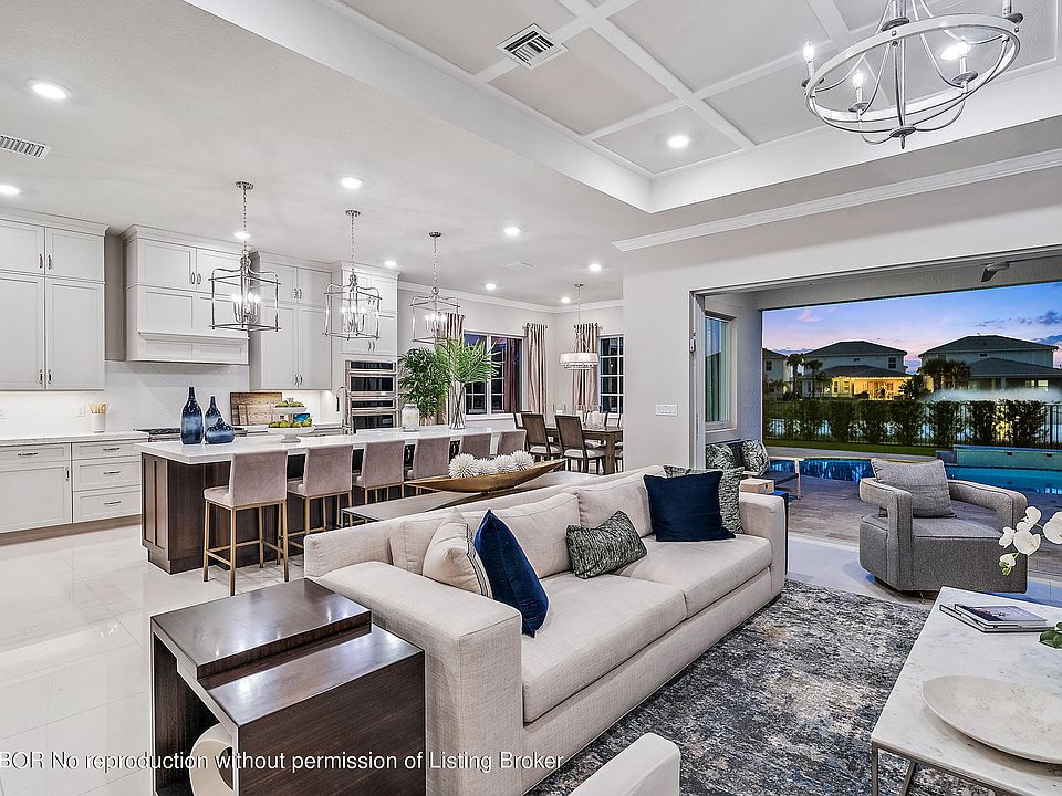 Welcome to La Terre in Avenir! Palm Beach County's newest luxury community. We are delighted to present to you the stunning Lucerne model home available turn key. This fully upgraded and customized property is truly one of a kind. Available fully furnished, it is the true embodiment of luxury and comfort. Nestled on a waterfront lot in the heart of Avenir. This exceptional home offers a sophisticated living experience that surpasses expectations. As you step into this 4 bedroom 3 1/2 bath home with a 2 1/2 car garage you will be greeted by a fabulous floor plan, incredible millwork throughout, and exquisite details with impeccable craftsmanship. The open-concept design seamlessly connects the living, dining, and kitchen areas, creating a spacious and inviting atmosphere ideal for both entertaining and everyday living. Among the many things that make this property special are the private entrance bedroom suite that offer a guest house experience inside the home. Enjoy this private bedroom, full bath, and living room with kitchenette perfect hosting friends and family. The gourmet kitchen is a culinary enthusiast's dream, featuring top-of-the-line stainless steel appliances, sleek countertops, and ample storage space. Whether you are hosting a dinner party or preparing a family meal, this kitchen will inspire your inner chef. This home boasts an array of luxurious amenities, including a private master suite designed for ultimate relaxation. The master bedroom offers a peaceful sanctuary, complete with a walk-in closet and a lavish ensuite bathroom featuring a soaking tub, a separate shower, and elegant fixtures. Two additional well-appointed bedrooms provide comfortable spaces for family members or guests, along with a shared bathroom that reflects the same level of sophistication and style found throughout the home. Beyond the interior, the Lucerne extends its allure to the outdoor living spaces. Step out onto the charming patio, where you can enjoy al fresco dining, a 3 hole putting green, and a resort style pool. Unwind with a book, or simply bask in the beauty of your surroundings. Avenir is renowned for its exceptional community amenities. These include lush green spaces, golf cart paths, extensive nature walking trails, and recreational facilities. You will find an incredibly gorgeous clubhouse, tennis courts, pickle ball courts, gym, multiple swimming pools, entertainment spaces, and so much more! In addition the community is connected to a brand new Jack Nicklaus par 3 golf course with clubhouse dining and The Sandhill Crane 18 hole public course with fine dining and pro shop! Don't miss the opportunity to make La Terre in Avenir your new home. Immerse yourself in luxury, comfort, and modern living. Discover the perfect blend of elegance and functionality that awaits you in this remarkable residence. Welcome to paradise!