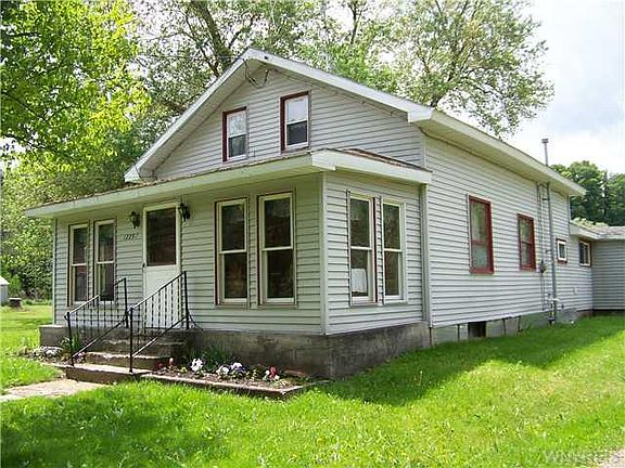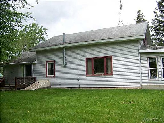 Olderwell built home with 6.97 acres as per tax bill. Not sure of the acreage.Survey being done. Has 1 bed down, 3 up but only 1 has closet. Large kitchen and living room,lst floor laundry,deck with new awning, very private at end of Old Olean Rd. Butts up to Catt. Creek and Large pond.Nice lot with meadow and woods.Very nice new walk in shower and bath. 2 car metal garage, another shed.Arcade Elec.National fuel.Very low utilities.Village water.