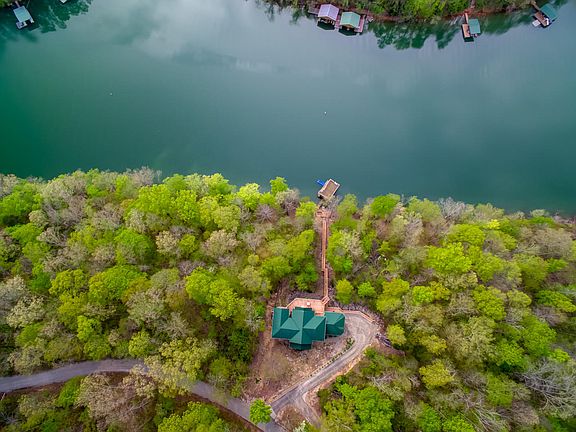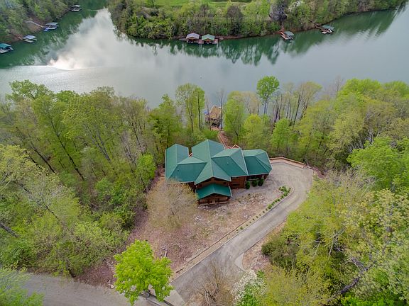 This remarkable true log cabin home was custom built and architecturally engineered with the highest quality materials. Situated on a spacious lakefront lot featuring year round deep water and approx 500' of lake frontage in Overlook Bay, the home offers the utmost in lakefront recreation enjoyment. With 3 separate levels and split bedrooms, the is plenty of room for a multi family vacation! The spectacular lake views from tiered decks and walk-out balconies on three levels will astound you. This home features dual HVAC systems, 6 bedrooms and 4 -1/2 baths of North Carolina logs, a two story great room with windows floor to ceiling, two hand cultured stone fireplaces, all natural woodwork with log and pine plank interior finishes.