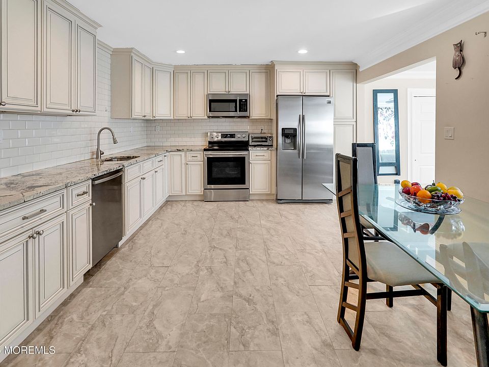 Welcome home to your mint condition, immaculate & beautifully appointed 2-bed ranch in the desirable Villages 55+ community. Completely renovated in 2022, it has been lovingly cared for & meticulously maintained. Enjoy the modern spacious eat-in kitchen w/ granite counters, stainless appliances, & subway tile backsplash. Enjoy your morning coffee or evening beverage in the bright sunroom/den with its newer windows. The renovated bathroom has an oversized shower. Recessed lights, crown molding, laminate floors & central air completes the features. The home has a warm, welcoming & spacious feeling. Enjoy the Villages amenities, including a sparkling pool and 2 new pickleball courts. Close to Rt 9. Make your plans to visit today! ROOM SIZES ARE APPROXIMATE & SQ FT from the tax record.