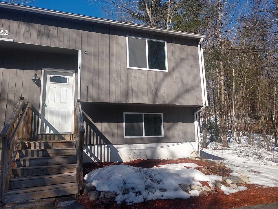 BEST BUY IN TOWN! ALL NEW INSIDE:The Right-hand side of a condex. 2/3 acre. Vacant now and ready! Completely gutted 5 years ago to the studs, insulated, new walls, and remodeled.. Owner/contractor did a complete reversal of floor-level usage on 2016 : upper level now has kitchen/ Dining area,w/ newer deck off it, LR, bath, W/D hookups in nook; lower level has 2 bedrooms PLUS den/office that some people might use as a 3rd bedrm. Roof 2 yrs old. .66 acres in country neighborhood, but just 10 minutes to I-93 for commuters. The owned Left side has one person living there, so house is peaceful! Features: Bamboo hdwd floors, 5 closets,oak cabinets, electric hydronic heating w/ timed thermostats. Will not go FHA,as it was built as a duplex originally; but 95% conventional financing possible, same rate.Lockbox, Showingtime,anytime.