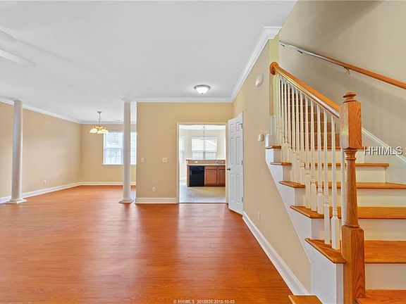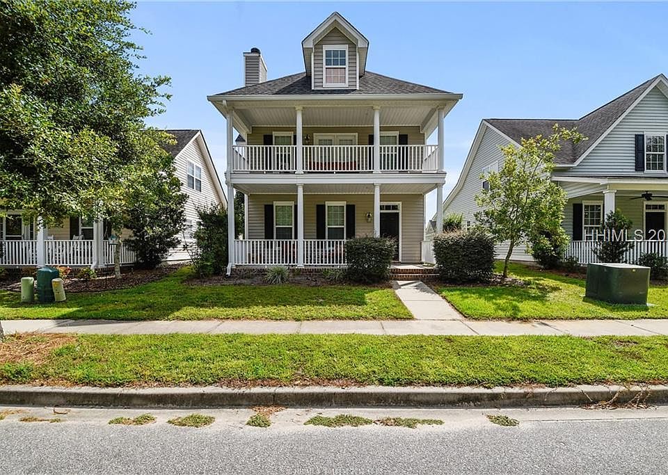 Move-in ready home in the highly desirable Bluffton Park! This Ashley Model has as a spacious layout and upstairs balcony that overlooks a private wooded and lagoon. Other features include a 2-car garage, hardwood floors throughout the living room and dining room, cozy fireplace in the living room, multiple dining areas perfect for hosting, and a master suite with soaking tub, separate shower, and large closet! This