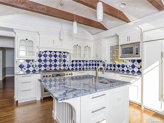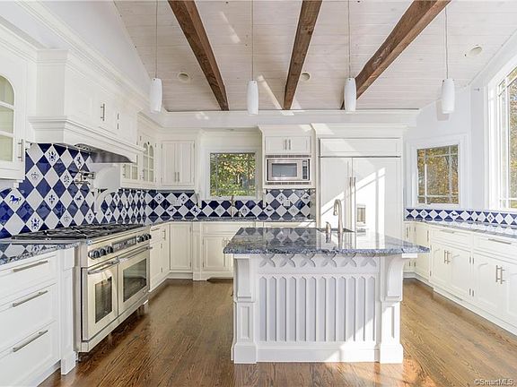 Craftsman artistry in desirable West Mountain Estates, a family-friendly HOA with year-round activities, pool/tennis/swim team. Over 5,100 SF of updated living space. Sunny gourmet kitchen with 6-burner gas stove, sub-zero, warming drawer, pot filler, DW and built-in microwave. Exterior fieldstone walls and entry, spacious circular driveway, and flat park-like lot on a cul-de-sac with walkable access to neighborhood rec center. New hardwood floors & crown molding throughout. Four BR on main floor, 5th BR/in-law/au pair suite on LL with private bedroom, full bath and walk out access. Lower level is bright and spacious with office, gym, full BA, wet bar, and plenty of rec space. Close to town, top-tier schools and NY for an easy commute. Immaculate and move in ready! Handicap features are discreet and a plus! Ask for pets.